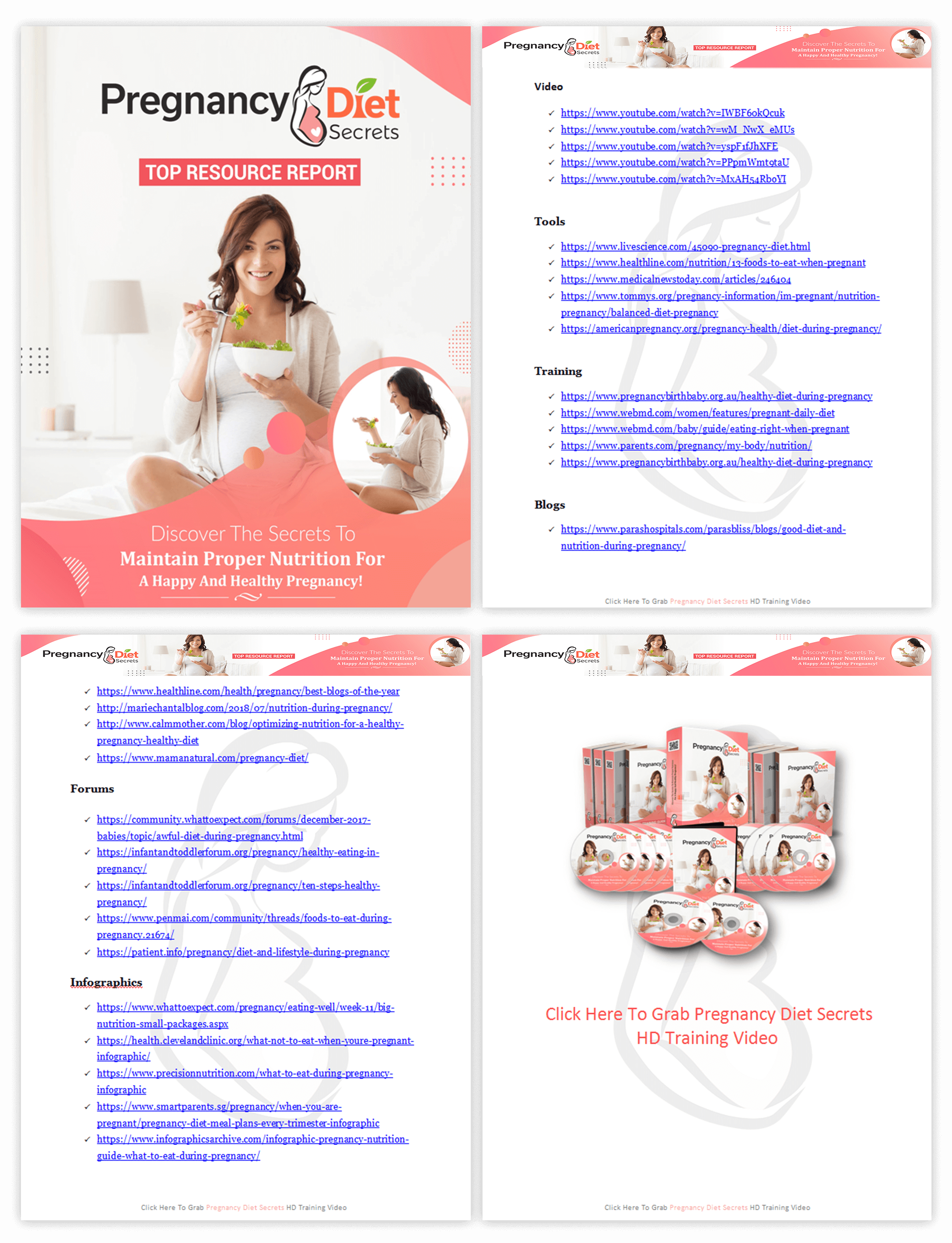 This is a comprehensive Research Report on 'Pregnancy Diet Secrets' resources including Videos, Tools, Training courses, Forums, Infographics, and Facts.