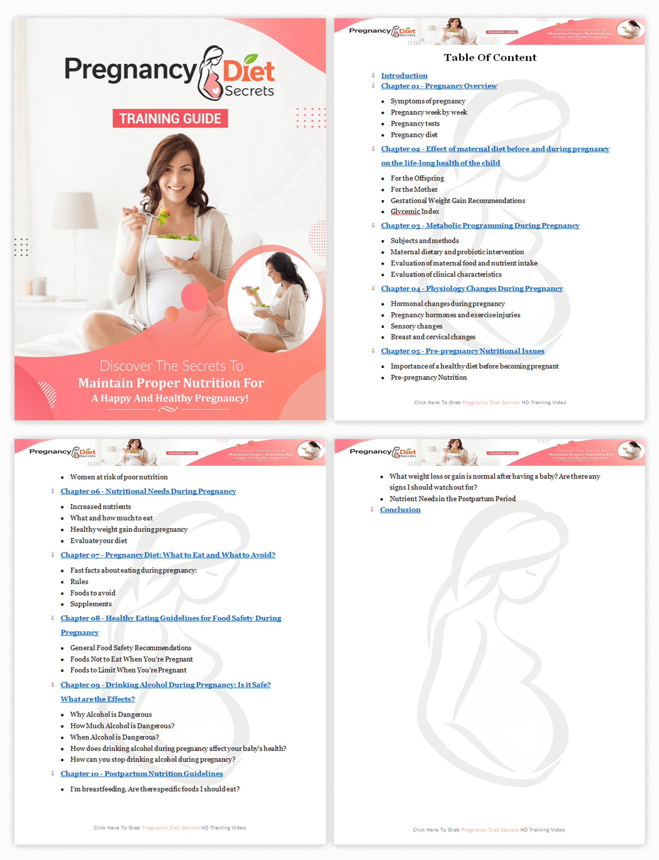 Check out below what all you get in the "Pregnancy Diet Secrets" Training guide!